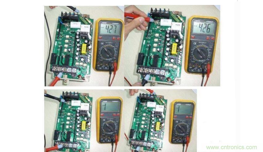 IGBT电路板包含驱动和缓冲电路,以及过电压、缺相等保护电路。从逻辑控制板来的PWM信号,通过光耦合将电压驱动信号输入IGBT模块,因而在检测模快的同时,还应测量IGBT模块上的光耦。